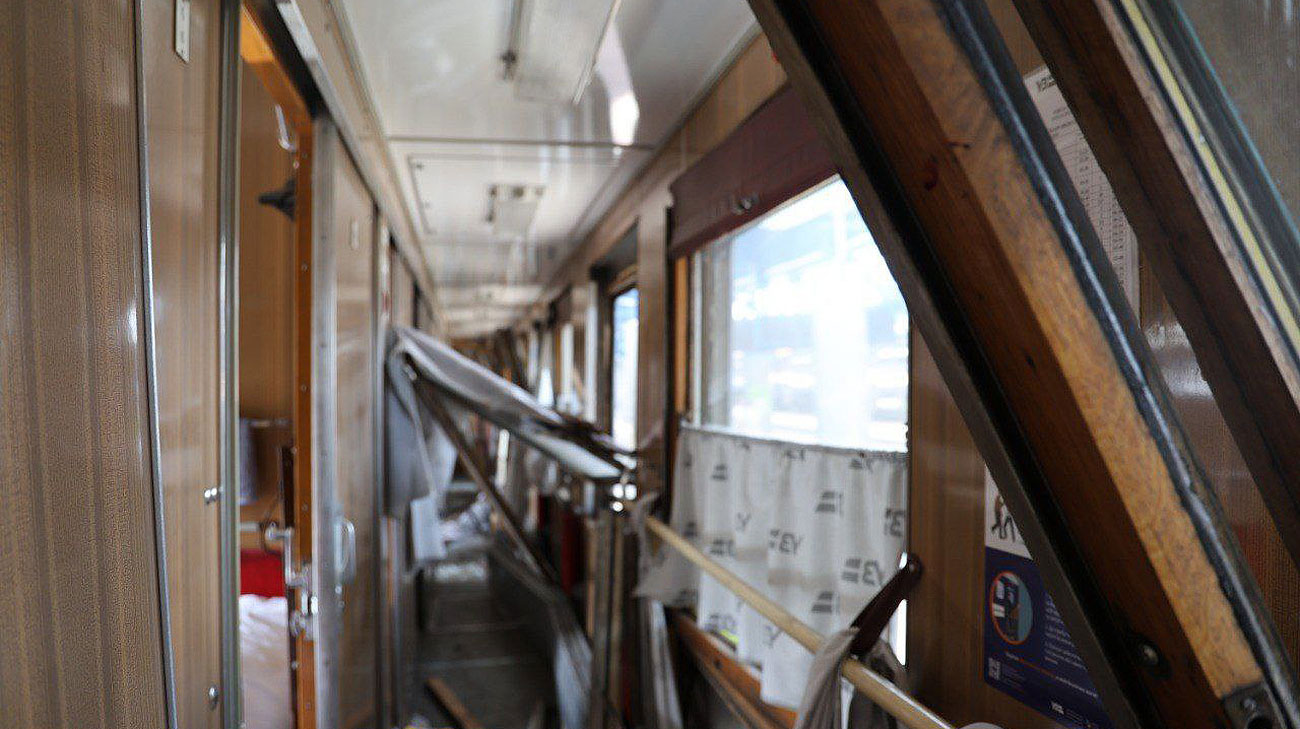 Trem danificado pela onda de explosão em Dnipro. Foto: Serhii Lysak no Telegram
